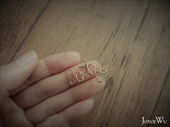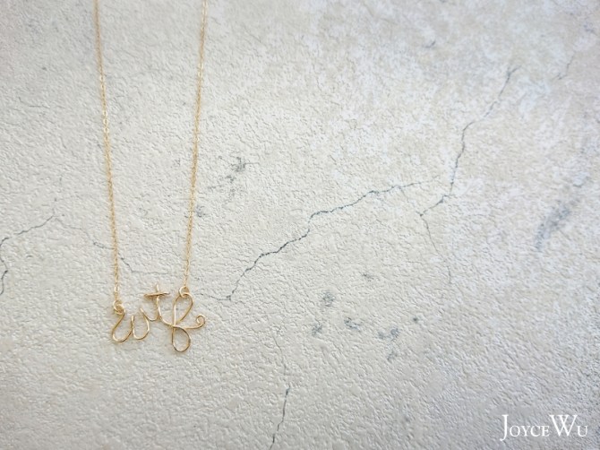 用金屬線扭製英文字母是去年許下的小心願,不過也就這麼拖著拉著總能變出一百個原因擱置,直至前些日子終於下定決心認真面對這檔事。一如往昔,首先使用無鍍色 20 gauge / 0.81 mm 黃銅線試做 (我們慣用 Artistic 及 BeadSmith 兩大品牌的 craft wire),沒想到第一次便上手,連草稿都不打直接憑藉感覺繞出來的字母還挺有模有樣,簡直讓人信心大增 (抖腿)。於是乎,不囉嗦,直接讓 14KGF 包金線上陣,途中三心二意硬改了 t 和 f 的繞法,彎來折去後便是連續兩件皆失敗收場 (眼神死)。包金線比起銅線或鋁線要硬些,剛開始使起來不是太順手,不過有練習有進步,封面照是包金線第三號試驗品,嘿嘿,是不是還蠻有這麼回事的!
