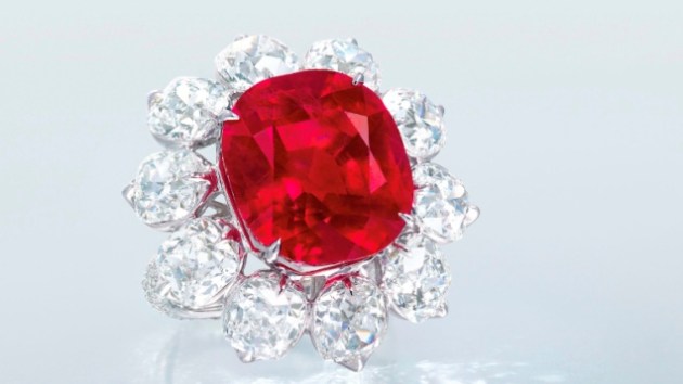 The 15.04 ct. Crimson Flame, an exceptionally rare Burmese pigeon’s blood ruby, is the highest price ever paid per carat at auction for a ruby: $1.2 million per carat. The inclusions found by microscopic inspection represent the hallmarks of classical ruby mines in the Mogok valley in Burma. Photo courtesy of Christie’s. 這顆產自緬甸莫谷極為罕見的鴿血紅寶石 — 15.04 克拉的「血焰」(Crimson Flame),創下了紅寶石拍賣史上最高的克拉單價:每克拉 120 萬美元,於 2015 年 12 月 1 日在香港佳士得拍賣行以 1800 萬美元售出。