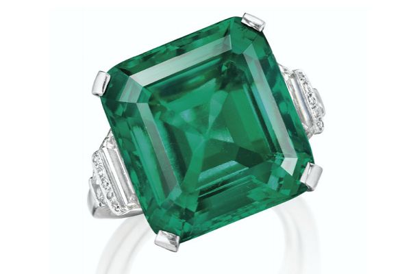 Provenance, along with a lack of inclusions, helped the 18.04 ct Rockefeller Emerald achieve a record per-carat price of $305,000 at Christie’s New York auction in 20 June 2017. Photo courtesy of Christie’s. 這枚由 Raymond Yard 所設計的戒指,主石為 18.04克拉的八角形階梯式切割的「洛克菲勒祖母綠」(Rockefeller Emerald),刷新祖母綠的歷史克拉單價,於 2017年6月20日在紐約佳士得拍賣行以 551.15 萬美金成交,每克拉單價高達 30.55 萬美金。
