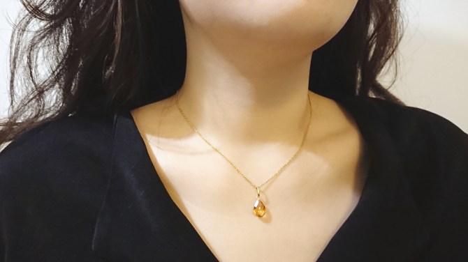 庫存的這批黃水晶切割裸石,是早期向一家香港工廠所訂購,石料和切工相當淨透漂亮,被擱置多年,直到某次聚會時有人詢問:記得妳有黃水晶…… 老闆才又重新一一翻出檢視,最後決定搭配也是早期香港生產的純 14K 金長型墜頭。話說這家工廠目前只專營鑽石紅藍寶等貴寶,已經不再處理水晶等半寶石了,現在就是且用且珍惜,我們最早上架的長青款白水晶切割墜也是同一時期的進料,或許未來會再讓紫水晶亮相,就請大家拭目以待吧!