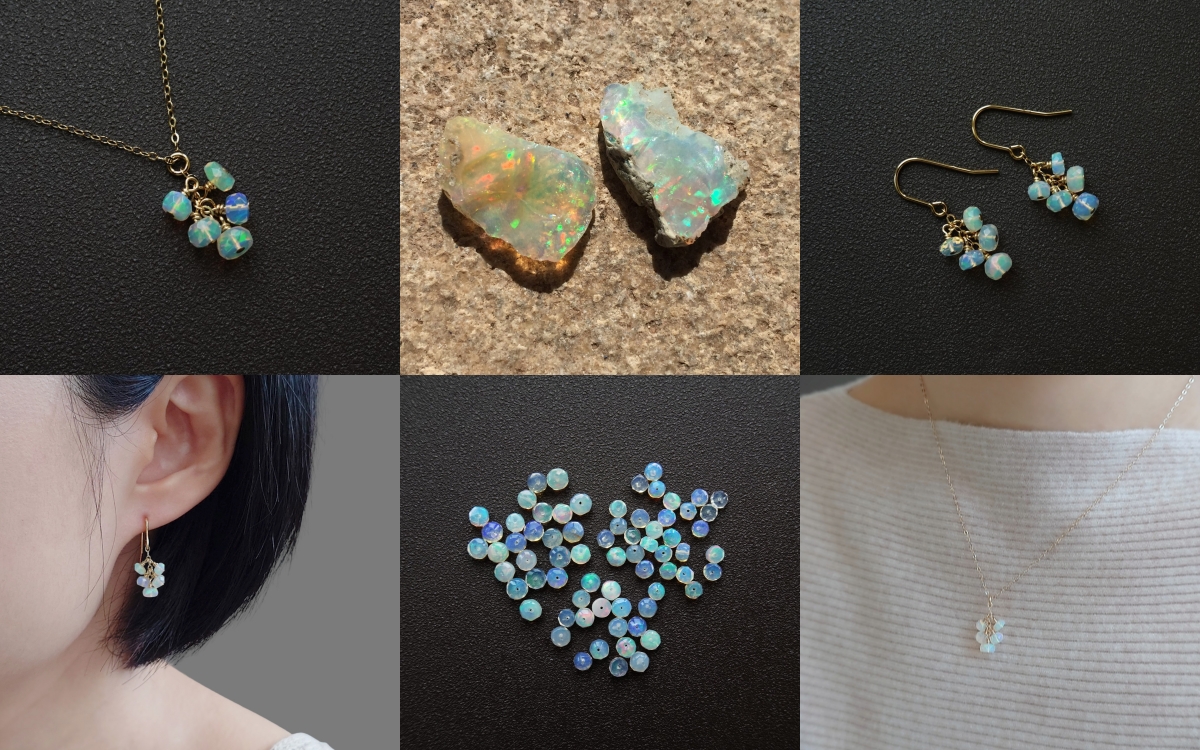 有些非洲蛋白石在隔一段時間之後,游彩現象會變差或消失,導致坊間對於非洲蛋白石的穩定度有所質疑。然而並非所有非洲蛋白石都會變化,只不過,目前從專業鑑定角度而言,尚未有明確的判別標準。因為游彩與二氧化矽球體(奈米等級的晶球顆粒)的排列有關,基本上,結晶顆粒越細緻,越能將水分子鎖在其中,游彩現象就更為穩定。我們的 K 金首飾鑲嵌過產自澳洲、墨西哥、以及非洲的貴蛋白石,都是蒐藏多年且確定品質無虞的寶石。這次 14Kgf 包金飾品使用的是較為便宜的非洲蛋白石(以進貨價來看),本人相當討喜,很開心終於找到能夠做成平價飾品的裸石(高等級者都被我們拿去做成 K 金啦),希望大家也能和我們一樣享受飾品的獨特!