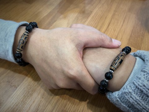 封面照片是去年底接受訂製的結婚禮物 (感謝客戶提供照片),一對男款天然石串珠手鍊。