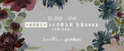 沒錯,我們將舉辦開店以來的首次全館九折活動!這次與 Pinkoi 聯合堆出的 Fashion 快閃折扣活動,將於 9/22 – 24 提供館內所有商品一律九折,外加無條件台灣免運的超值優惠 (不包含純 K 金品項)。看倌們若有觀望已久的採購清單,可以先放進購物車,等到活動開跑時再一併結帳!